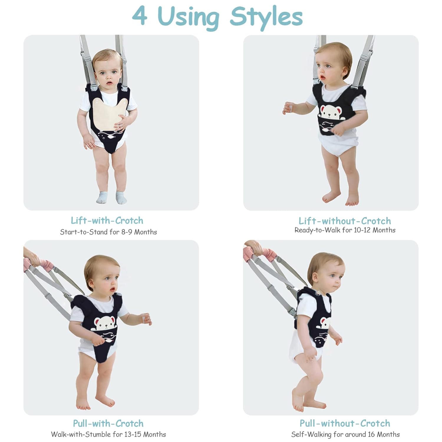 Parent-friendly baby harness for easy, pain-free walking practice.
